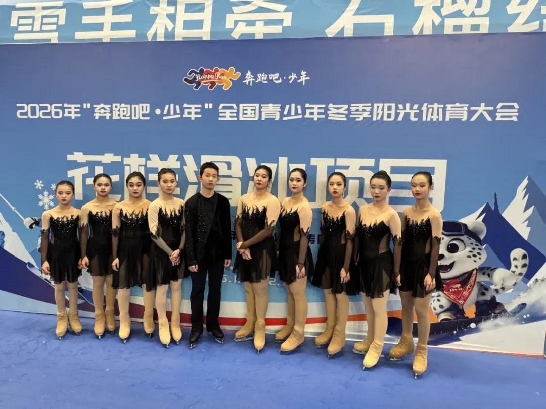 本次大会,广东队共选派10名队员参与花样滑冰队列滑项目比拼。赛中全体队员配合默契、动作整齐划一,充分展现了日常训练成果与团队凝聚力,最终凭借稳定发挥与出色表现,斩获队列滑项目第一名。比赛期间,队伍与各参赛队伍交流切磋、互学互鉴,既积累了大型赛事实战经验,也明晰了后续训练优化方向。