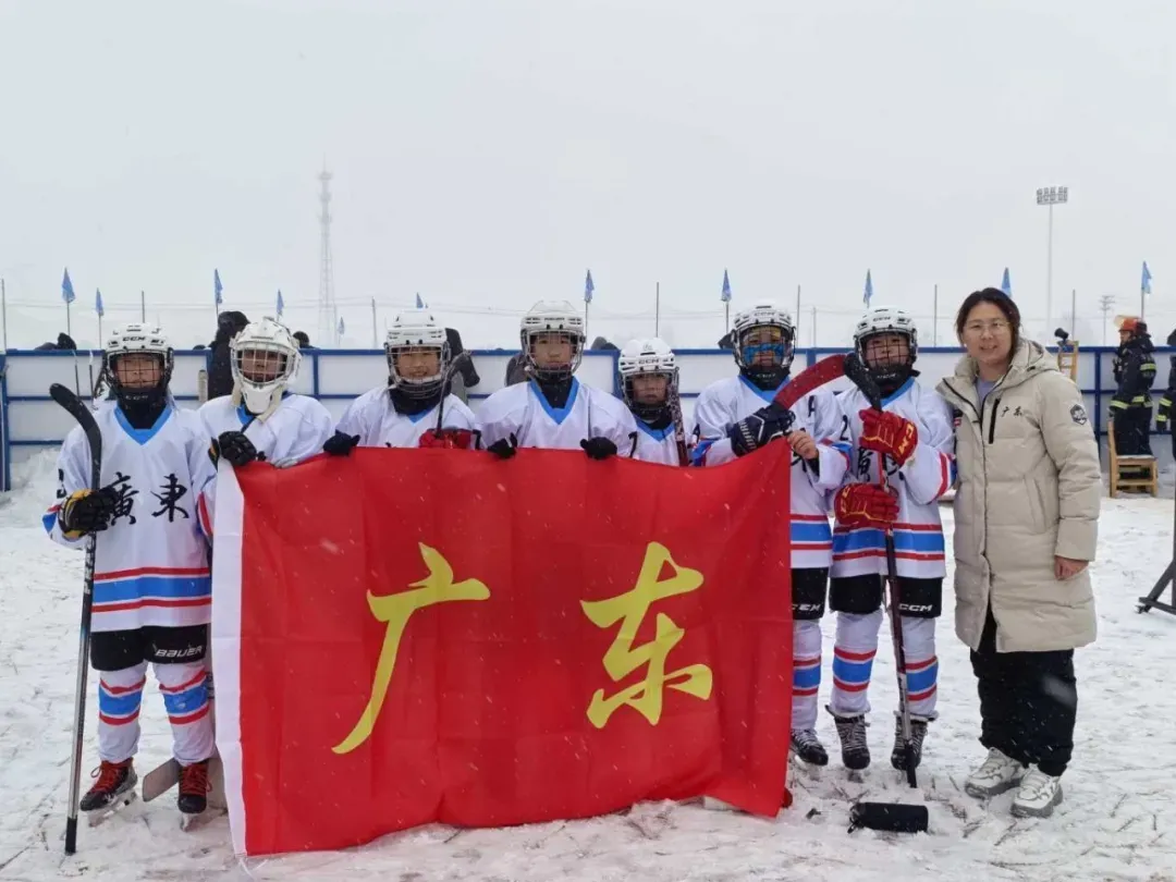 广东男子冰球队由3名来自广州的羊城闪电冰球运动俱乐部和4名来自深圳的世纪星滑冰俱乐部的普通学校学生组成。小组赛中,广东队战胜黑龙江队、青海队,以小组第一进入半决赛,之后惜败香港队及北京队,最终获得三等奖。本次冰球比赛共有27个省市和特区组队参加,南方的孩子们克服低温、室外比赛、第一次完全脱离父母、队员受伤等困难,打破了南方孩子不适合冰雪运动项目的刻板印象。